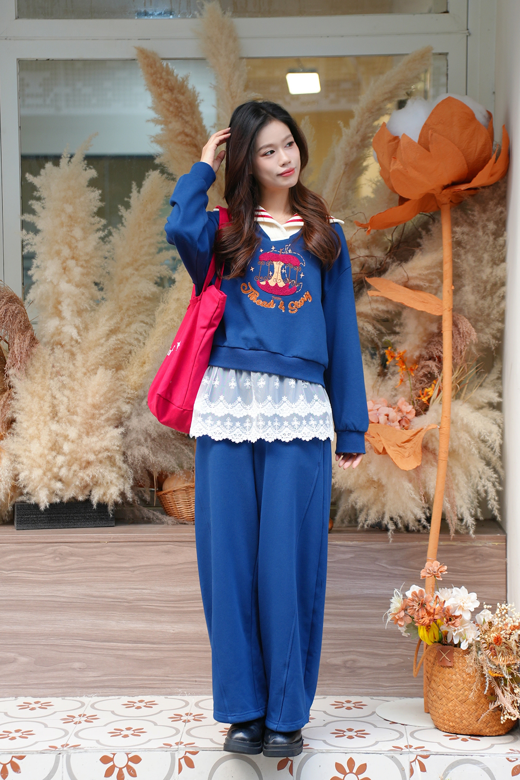 Van Gogh-inspired art patchwork two-piece look sweatshirt
