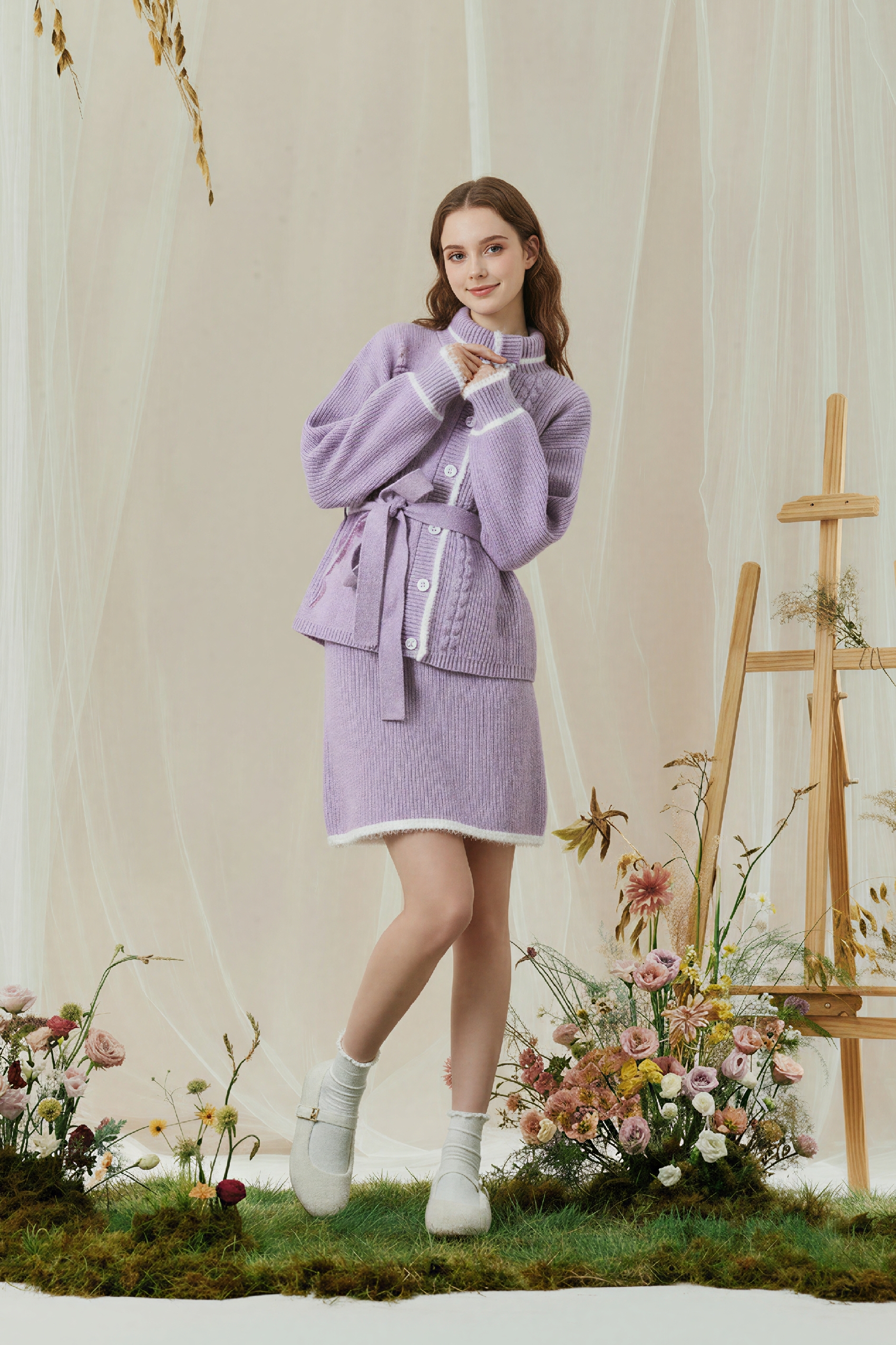 ヴァン・ゴッホ風 Color-ブロックニット2ピースセット