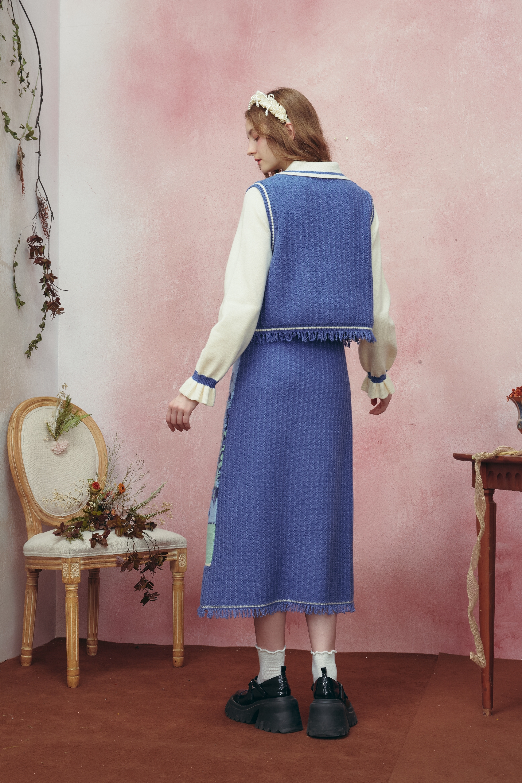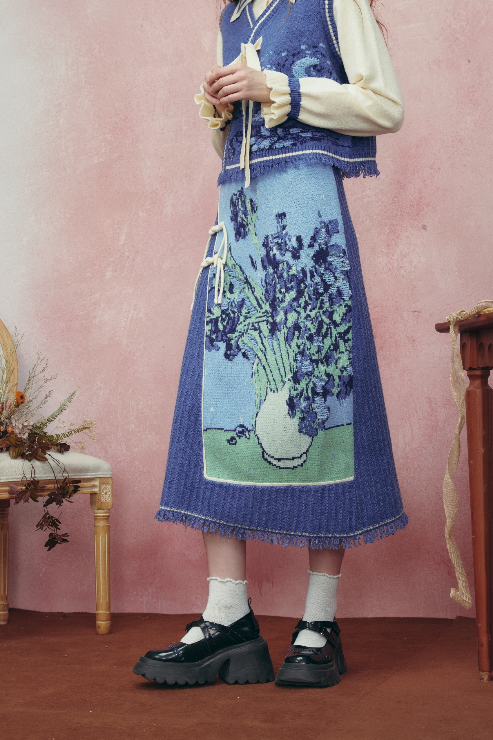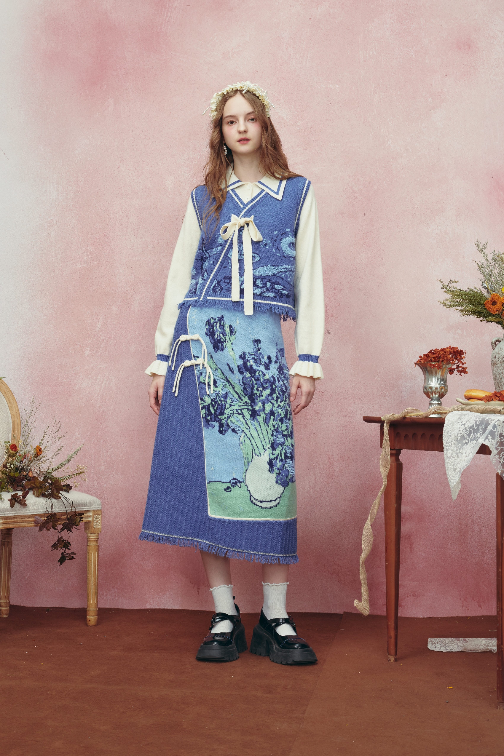 반 고흐에서 영감을 받은 슬림핏 니트 투피스 세트