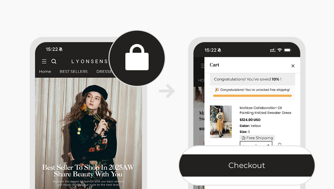 2.If you are ready to place your order, click the ‘Checkout’ button, If you want to choose more items, click ‘Continue shopping’ button.