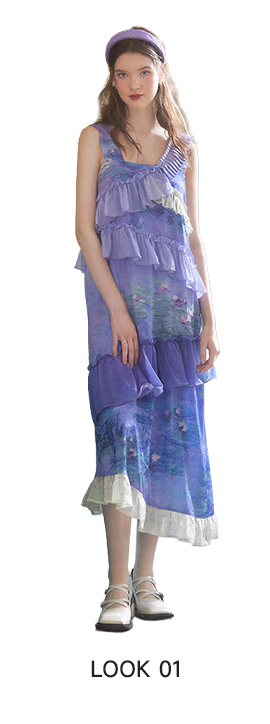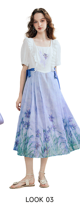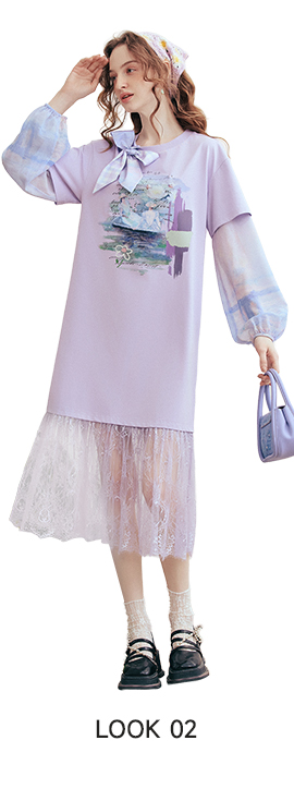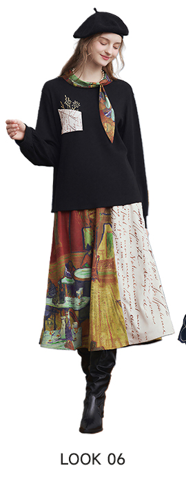 Patchwork Hem Printed Tie-Detail Dress